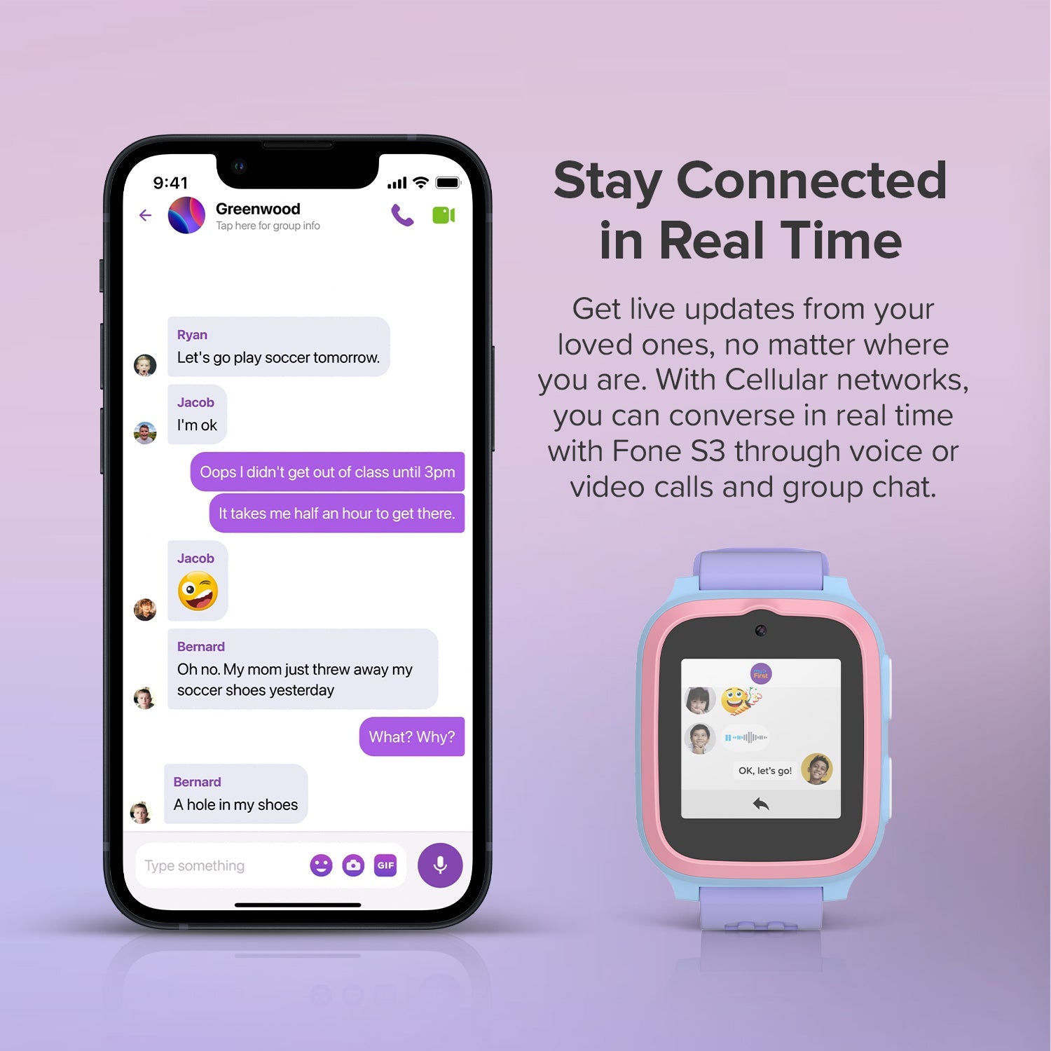 Using cellular networks, the Fone S3+ and smartphone can converse in real time through either voice or video calls. This means that you can always see and hear the people who matter most to you, no matter where you are in the world.