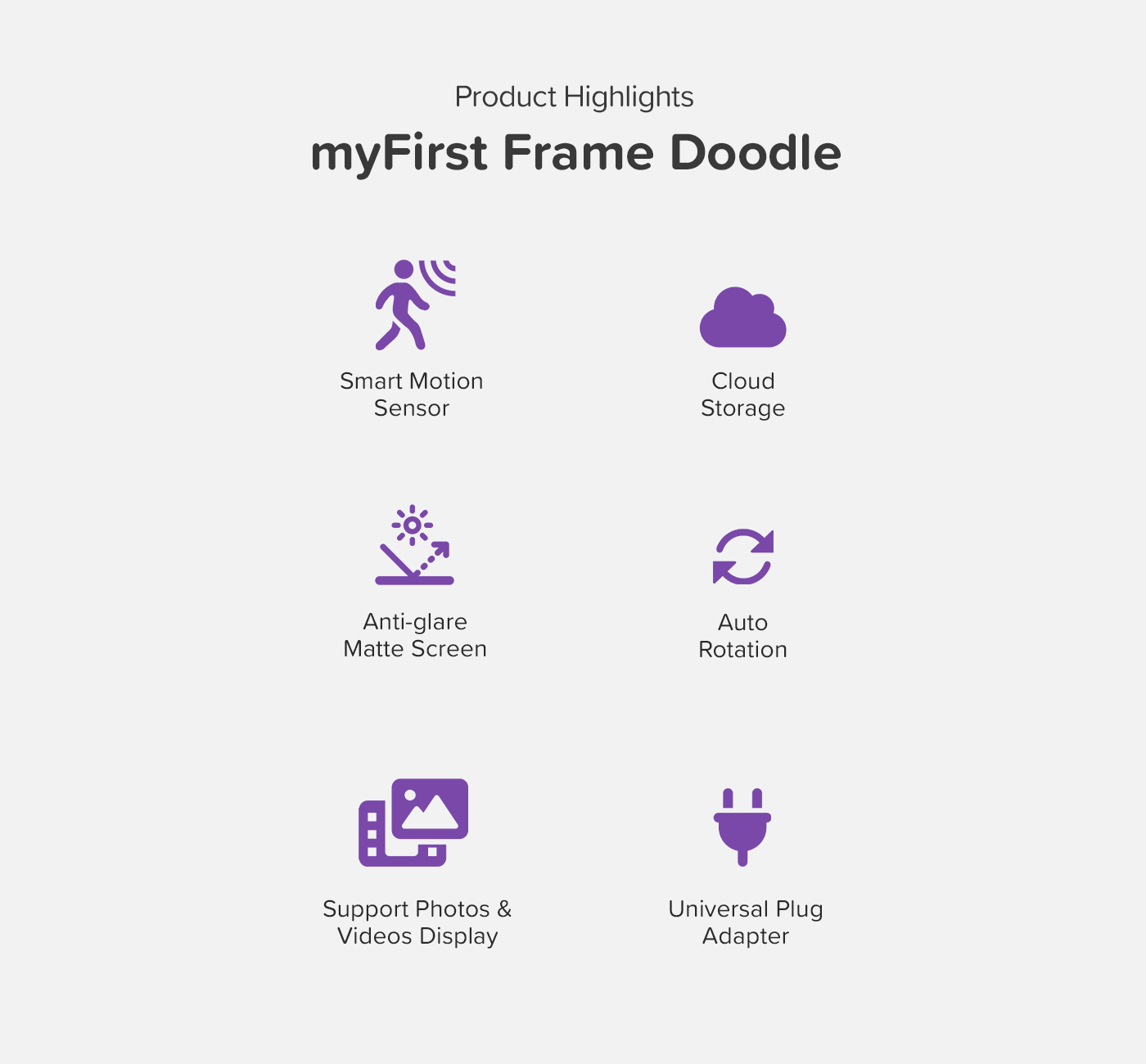Enjoy perfect image orientation with the myFirst Frame’s auto-rotate feature, adapting to your frame’s position, whether vertical or horizontal, for an ideal viewing experience.