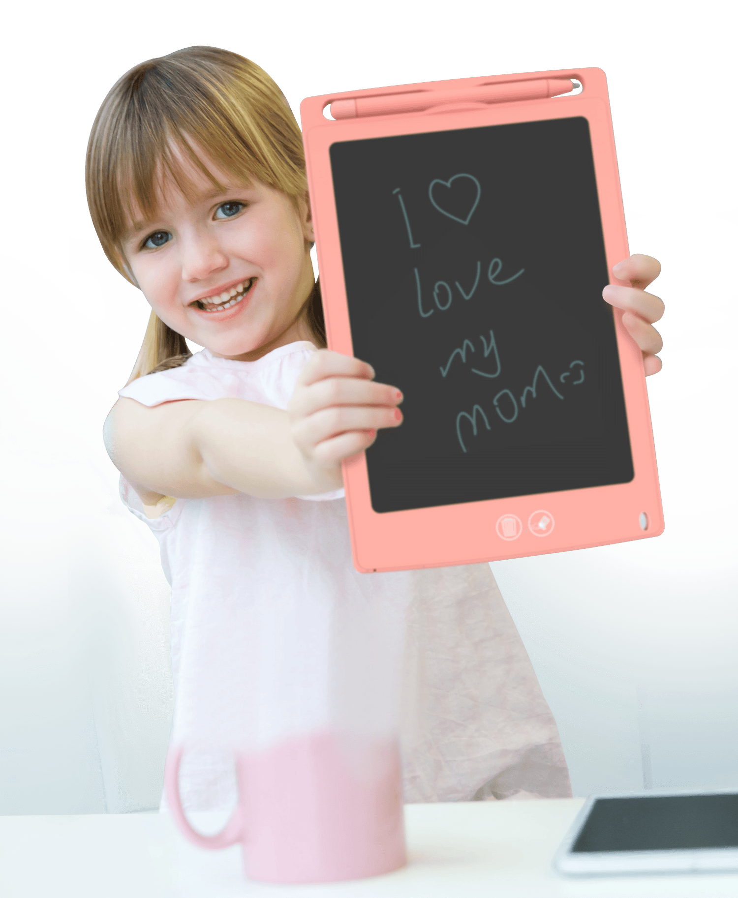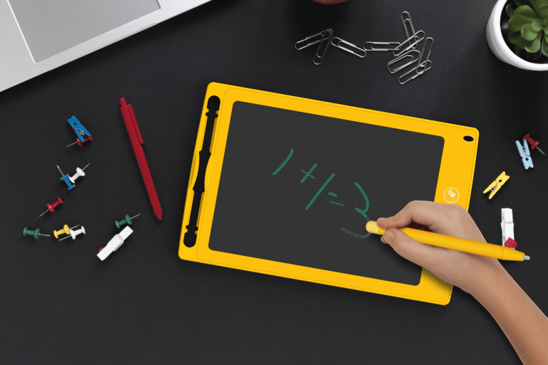 Designed with rounded rubberized corners, it is the perfect companion for out and about kids. The large format screen allows you to take school notes, scribble thoughts, sketches, tic-tac-toe and many more.